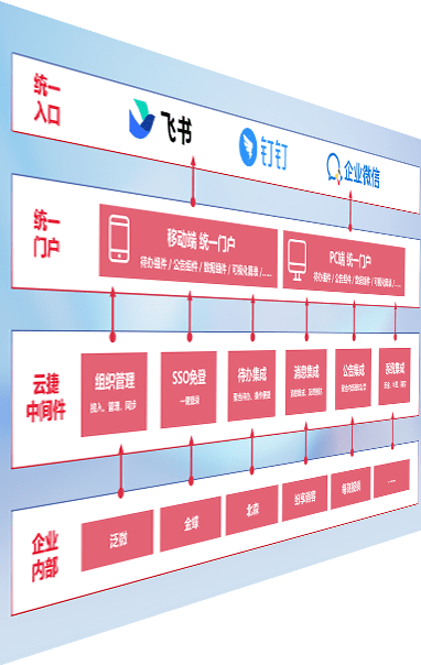 对协作平台提供支持服务,,支持企业应用与协作平台对接,,,,包含组织同步、、、、消息集成、、、待办集成等。。。支持目前主流的协作平台:钉钉、、企微和飞书。。。。